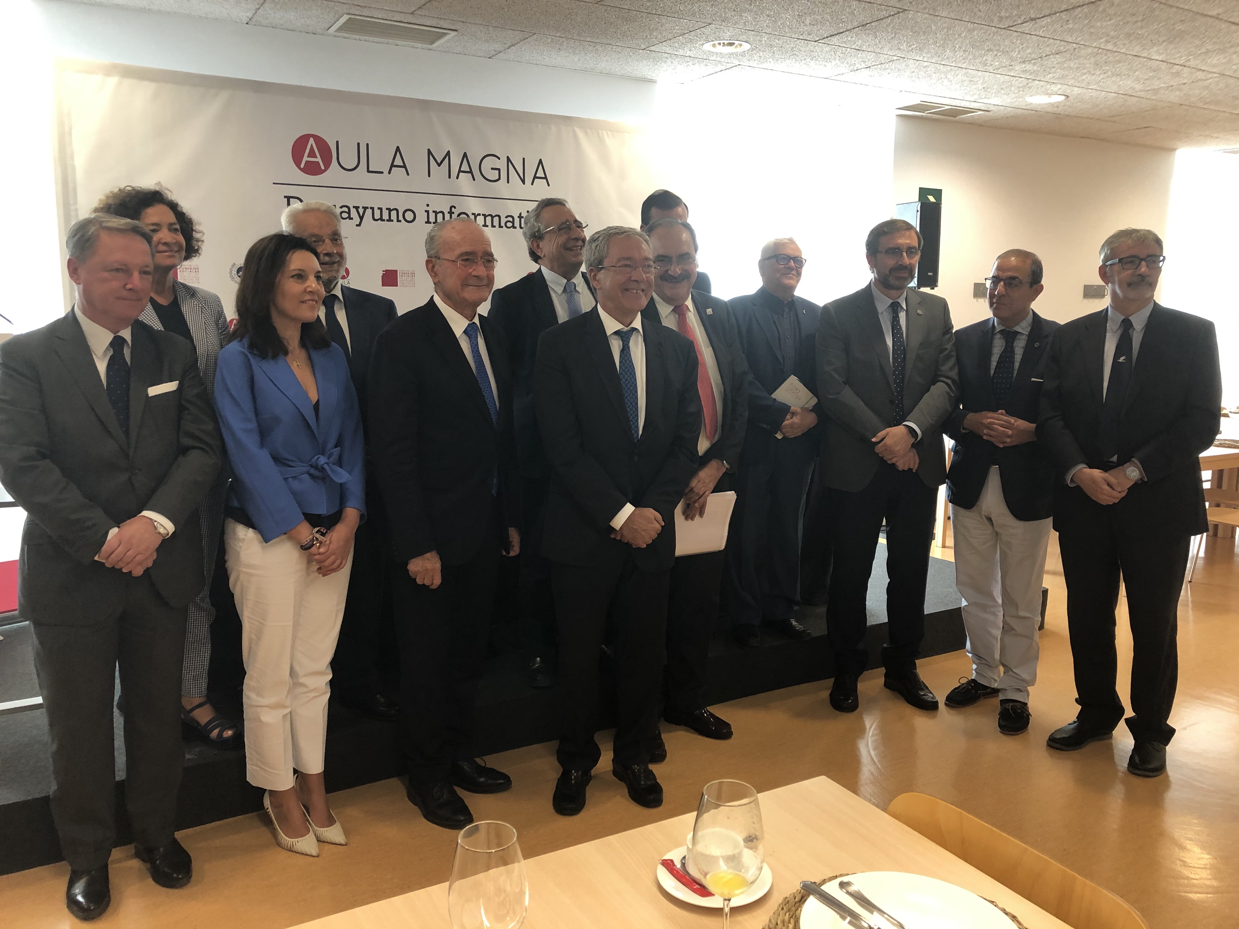El consejero de Economía, Conocimiento, Empresas y Universidad, Rogelio Velasco, ha apostado por que “el nuevo mapa de titulaciones de las universidades se ajuste a criterios de eficiencia, evitando con ello la duplicidad de costes y la inadecuación de la oferta a la demanda de estudios; y de calidad para lograr la mejor formación científica, humana y técnica del estudiantado”. Así lo ha destacado durante el Desayuno Informativo de Aula Magna, donde ha asegurado que esa prioridad se someterá, en todo caso, “a consenso de los rectores”. Este acto también ha contado con la presencia de los rectores de las universidades de Cádiz, Francisco Piniella, de Granada, Pilar Aranda, de Jaén, Juan Gómez, de Málaga, José Ángel Narváez, y de Sevilla, Miguel Ángel Castro; y del alcalde de Málaga, Francisco de la Torre; así como con la participación del presidente del Foro de Consejos Sociales de Universidades Públicas de Andalucía, Prudencio Escamilla.