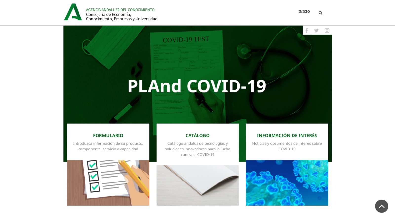 La Plataforma Andaluza para la Recepción, Identificación, Análisis y Transferencia de Capacidades y Soluciones de Innovación para la lucha contra el COVID-19 (PLAnd COVID-19) ha registrado desde su creación 145 iniciativas de entidades innovadoras andaluzas relacionadas con la lucha contra el coronavirus, de las cuales 134 proceden de empresas, cinco de grupos de investigación, tres de centros de I+D+i, una de una asociación empresarial o clúster, una de una fundación y una de un centro tecnológico. El Consejo de Gobierno ha tomado conocimiento de su puesta en marcha por parte de la Consejería de Economía, Conocimiento, Empresas y Universidad, a través de la Agencia Andaluza del Conocimiento (AAC).