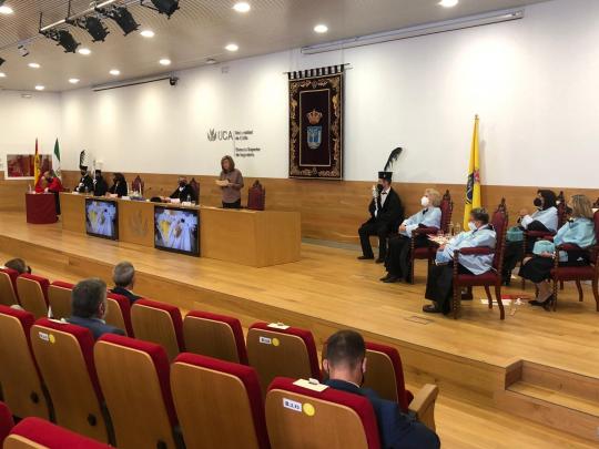 La secretaria general de Universidades, Investigación y Tecnología de la Consejería de Transformación Económica, Industria, Conocimiento y Universidades, Rosa María Ríos, ha realzado la trayectoria política en los inicios de la democracia española de Soledad Becerril y María Izquierdo, investidas Doctoras Honoris Causa por la Universidad de Cádiz. En el acto ha asegurado que estas dos mujeres, aunque de signo político distinto, compartieron una lucha común en esa etapa tan relevante: la elaboración de la Constitución Española, la consecución de una legislación basada en la igualdad por razón de sexo o la superación de la crisis económica en la que se encontraba inmerso el país.