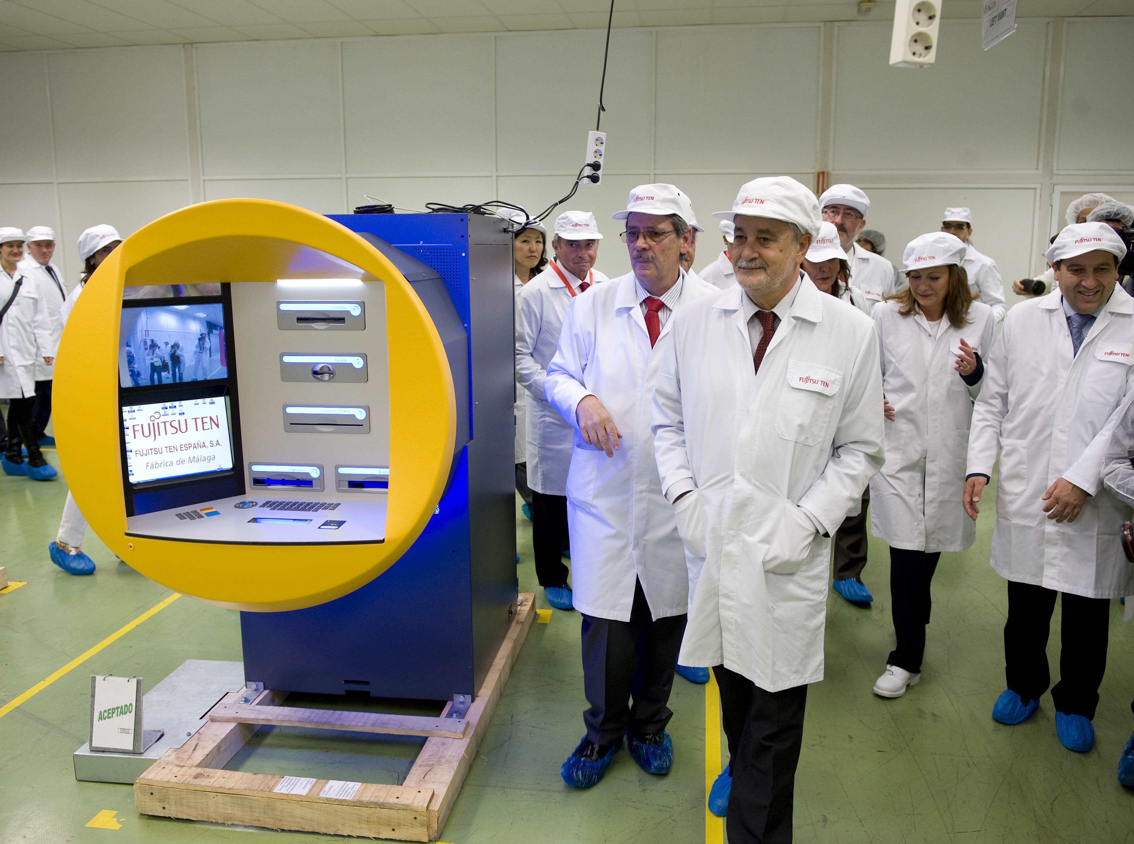 Durante la visita a la fábrica de Fujitsu, los directivos de la compañía han trasladado al presidente el compromiso de la empresa con Andalucía, que se concreta en un plan de inversiones, ya en marcha, por un importe superior a 13 millones de euros centrado en el desarrollo, instalación y equipamiento de nuevas líneas de productos de automoción y el lanzamiento de una nueva generación de cajeros automáticos, ambos en Málaga.