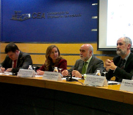 La Directora General de Investigación, Tecnología y Empresa, Eva María Vázquez, ha participado en la presentación de este foro junto al subdirector general de Fomento de la Innovación Empresarial del Ministerio de Economía y Competitividad (MINECO), Luis Cueto, y representantes de la CEA y las universidades de Málaga y Sevilla.
