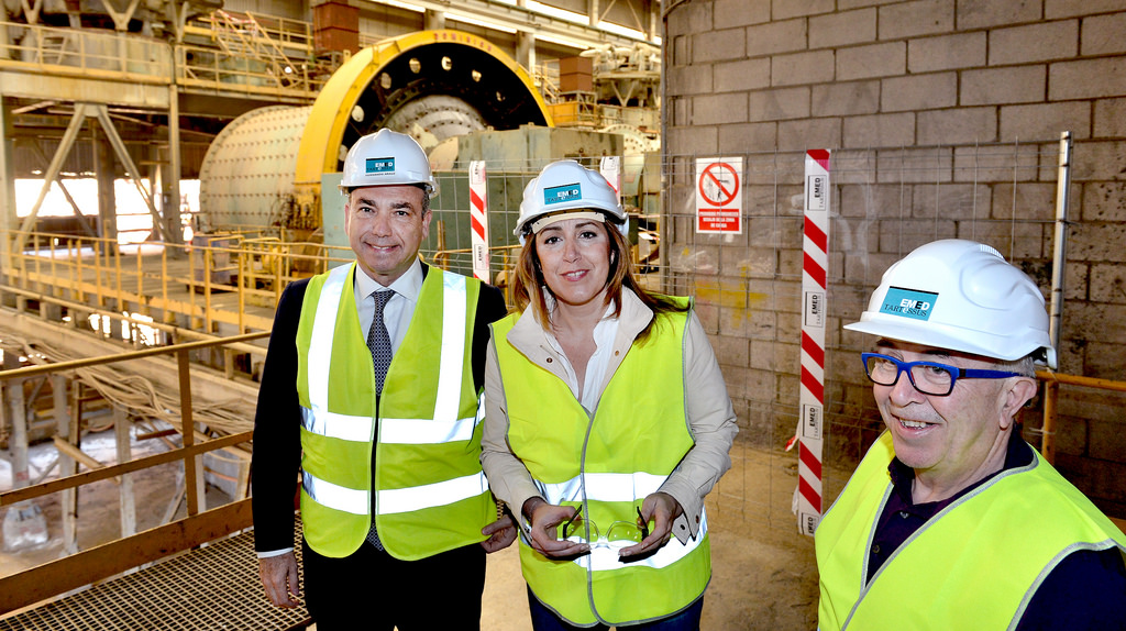 La presidenta andaluza ha visitado las instalaciones de la empresa EMED Tartessus, la planta metalúrgica y la corta minera Cerro Colorado, donde ha podido conocer los planes de la empresa para abordar la explotación de la mina. El vicepresidente de EMED Tartessus ha explicado las diferentes fases en las que se va a trabajar para la extracción de cerca de 123 millones de toneladas de mineral.