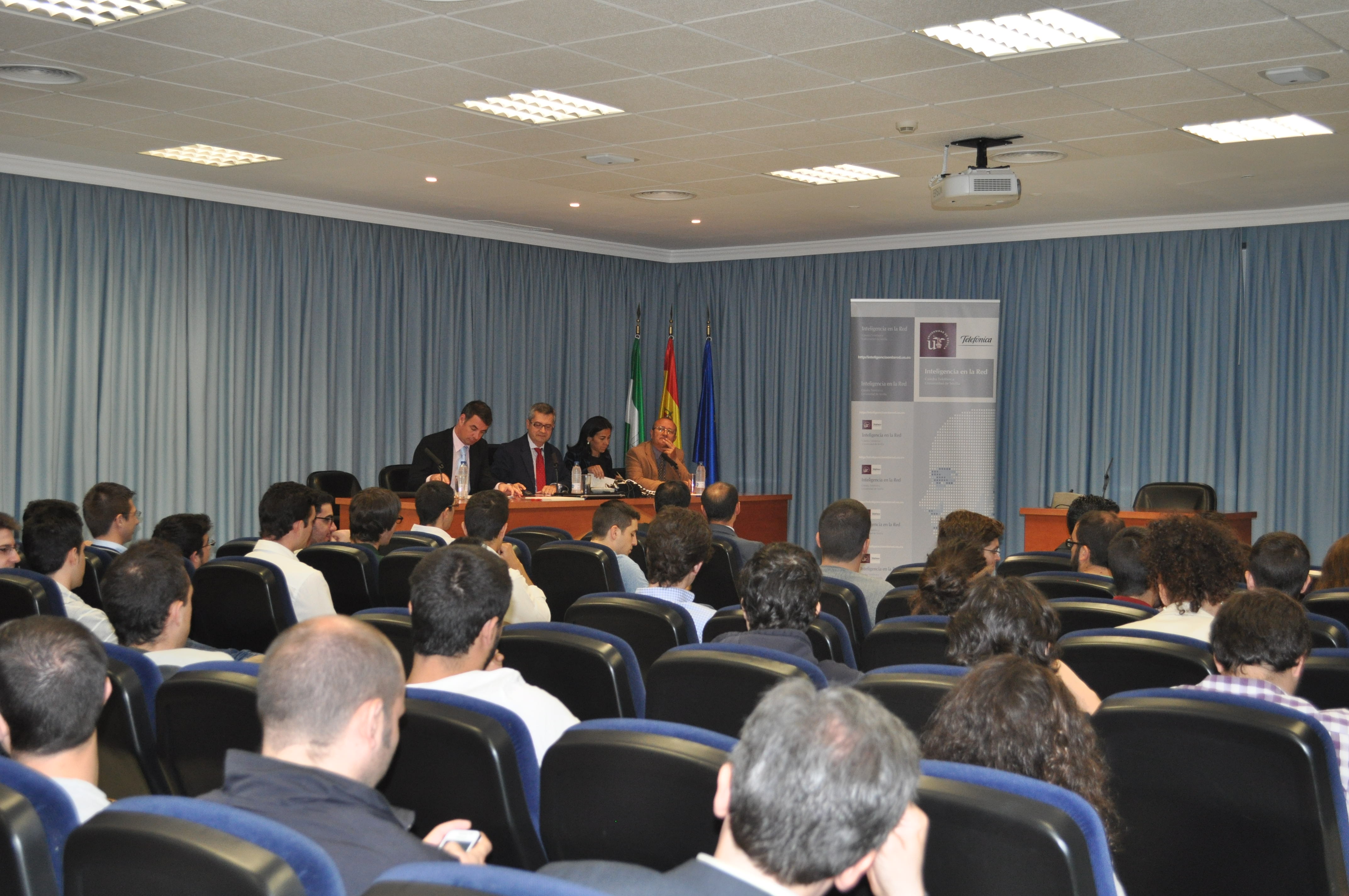 El secretario general de Innovación, Industria y Energía de la Consejería de Economía, Innovación, Ciencia y Empleo, Vicente Fernández, ha presentado junto a la directora de Territorio Sur de Telefónica, María Jesús Almazor, la primera convocatoria de las becas 'Talentum Startups' en la Universidad de Sevilla, un evento ha tenido lugar en la Escuela Técnica Superior de Informática y en el que se ha presentado a los estudiantes el funcionamiento de este programa. El acto ha contado también con la presencia de Carlos León, vicerrector de infraestructuras de la Universidad de Sevilla.