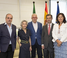 El consejero de Economía, Innovación, Ciencia y Empleo, José Sánchez Maldonado, ha mantenido un encuentro con una representación de la Fundación Goñi y Rey, encabezada por su presidenta María Isabel Goñi y su vicepresidente Luis Rey Goñi, que le han trasladadado el acuerdo que han suscrito con la Singularity University para celebrar en Sevilla, en marzo de 2015, una gran cumbre europea en la que se abordarán grandes avances tecnológicos que podrían cambiar la vida de los ciudadanos en las próximas décadas.